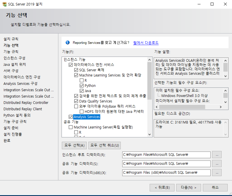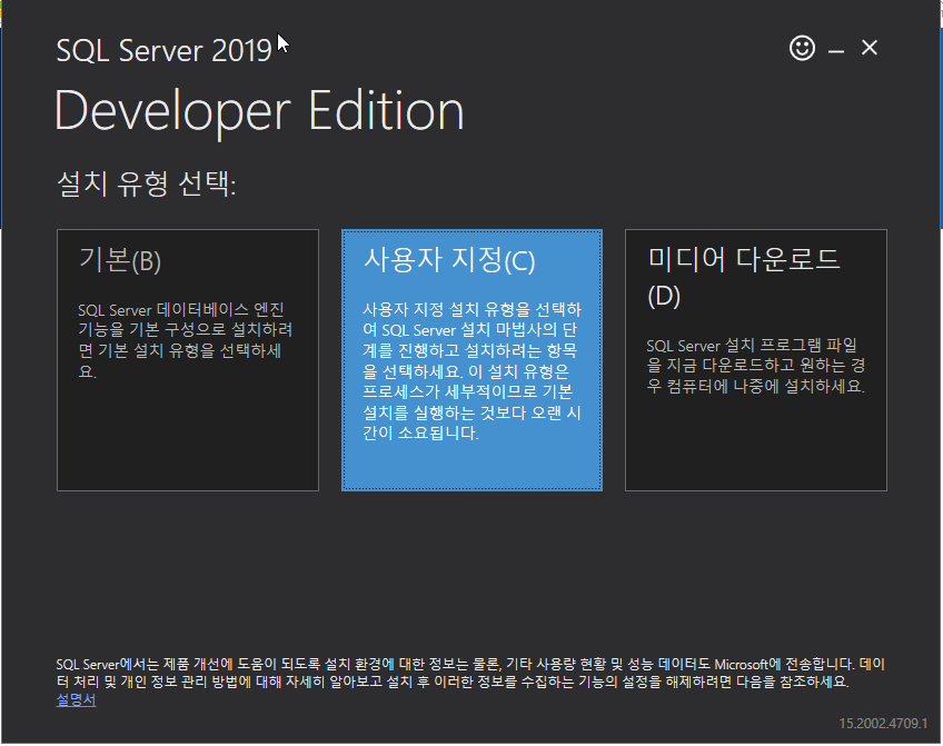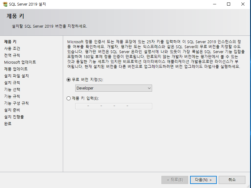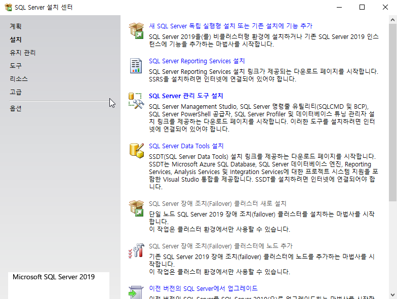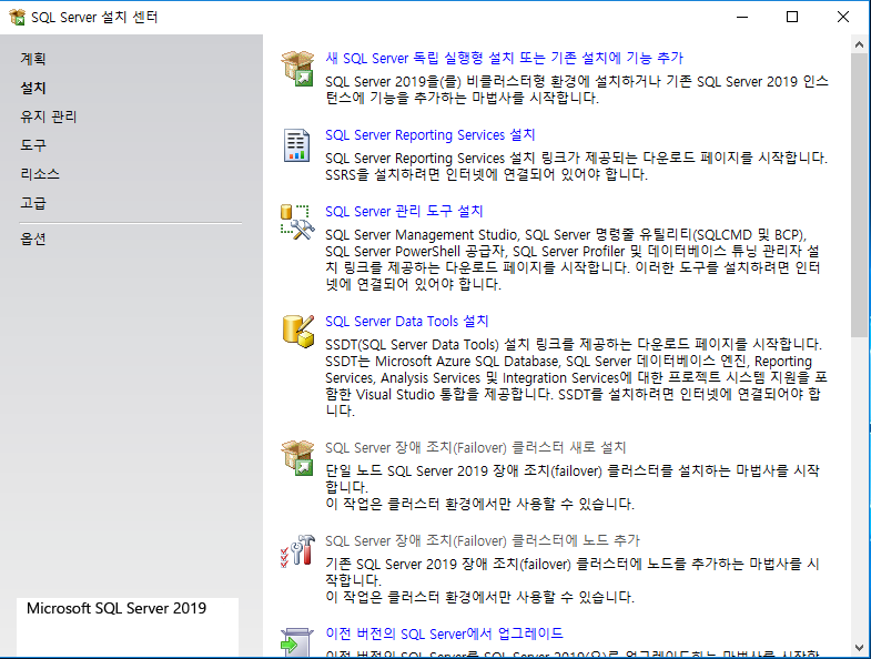 설치 > 새SQL Server 독립 실행형 설치 또는 기존 설치에 기능 추가