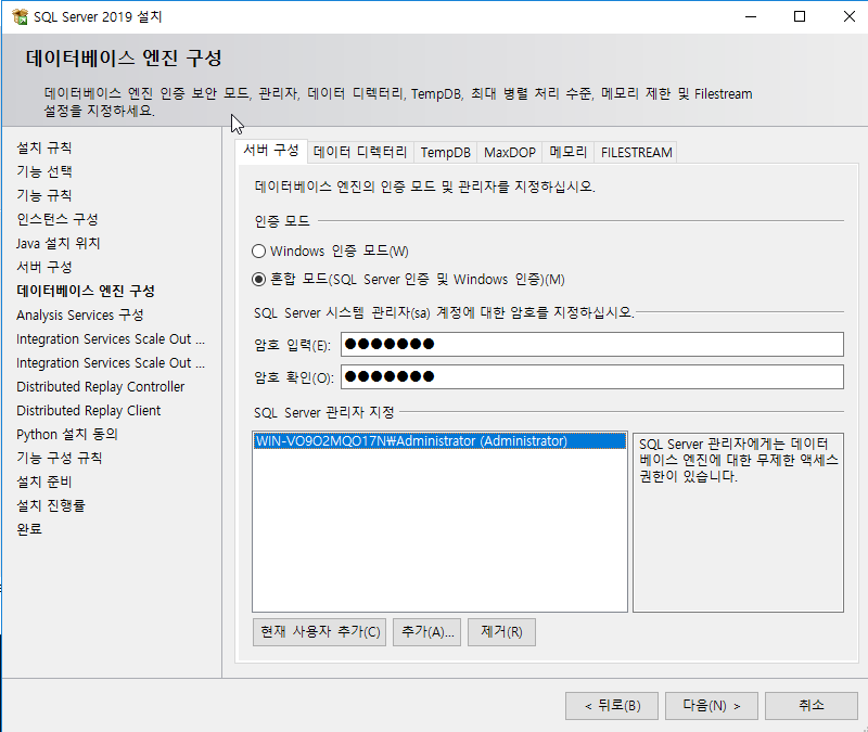 OS가 Windows Server 2016 위에 설치하였습니다. 이 전 포스트 이어서 진행